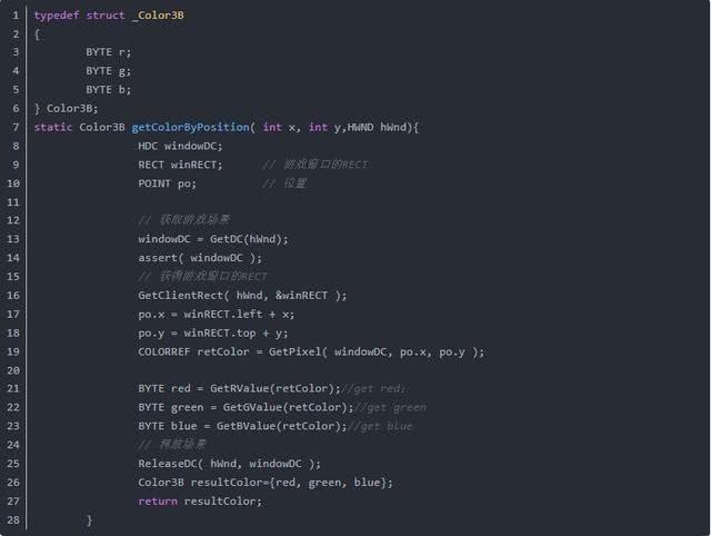 下面的代码可以得到一个点的颜色,核心代码是GetPixel。