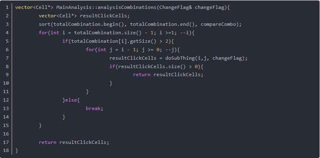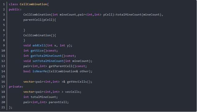 我用一个类叫CellCombination来表示一个子项,它有N多个格子的坐标组成。还有一个Int来存总的雷数。我还记录了是哪个格子产生的子项。