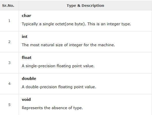 C编程语言还允许定义各种其他类型的变量,我们将在后续章节中介绍它们,如枚举,指针,数组,结构,联合等。在本章中,我们只研究基本变量类型。