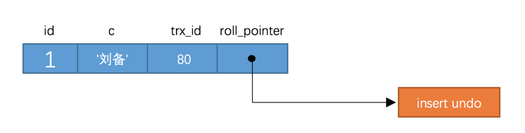 c的内容是'刘备',该版本的trx_id值为80,80小于m_ids列表中最小的事务id100,所以这个版本是符合要求的,最后返回给用户的版本就是这条列c为'刘备'的记录。