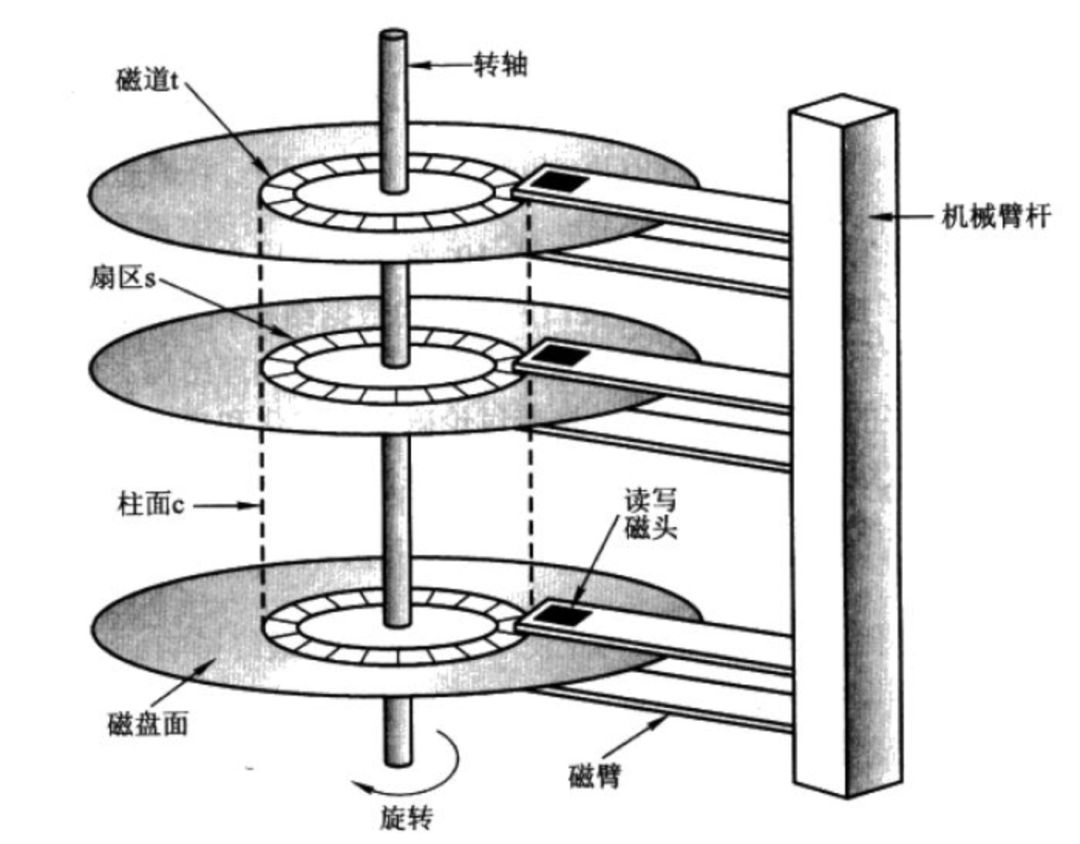 此外,磁盘并不是像上图那样只有一面,如果夸张地把磁盘内部结构放大,它应该是下面这个样子的: