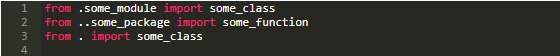 你可以看到上面每个导入语句中至少有一个点。相对导入使用点标记来指定位置。