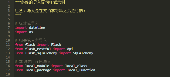 上面的导入语句被划分为三个不同的组,由空行分隔。它们也按字母顺序排列在每组中。