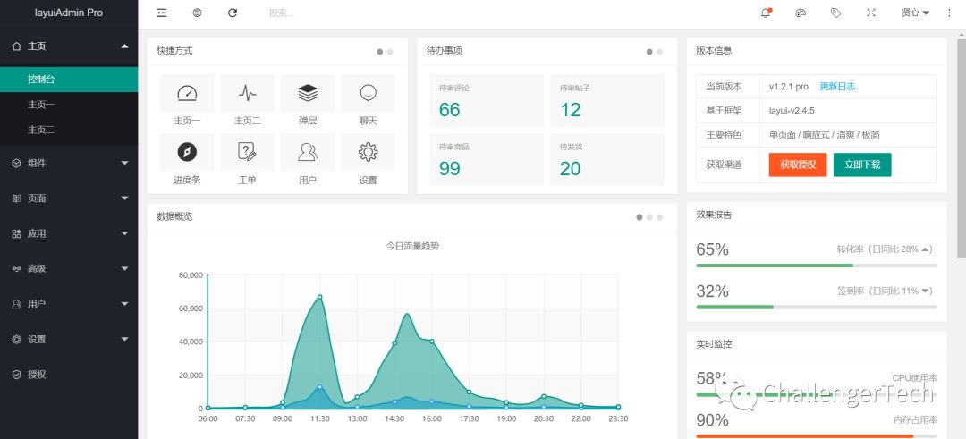 大家是不是觉得这个模板很熟悉,我通过查看源代码,发现它这个模板就是采用layui。