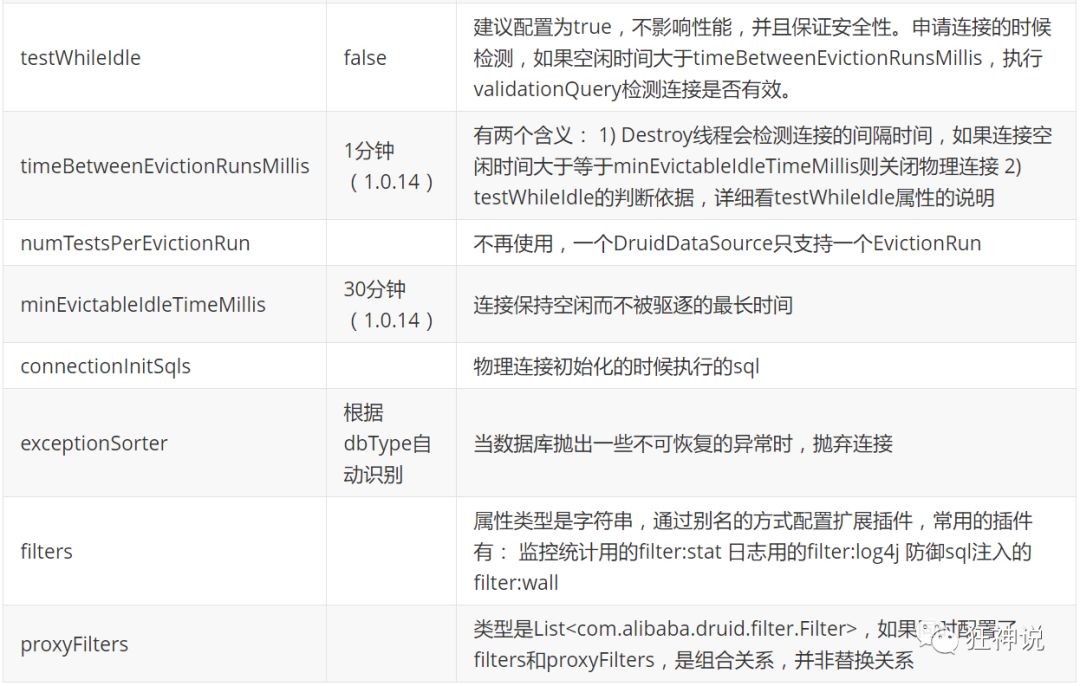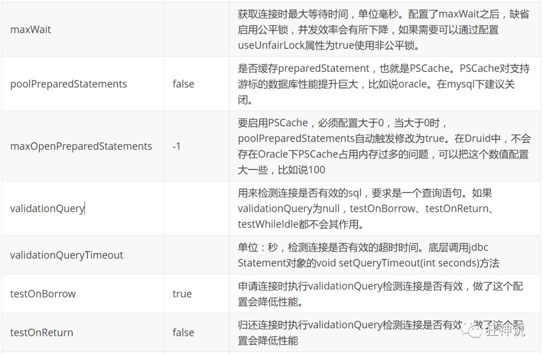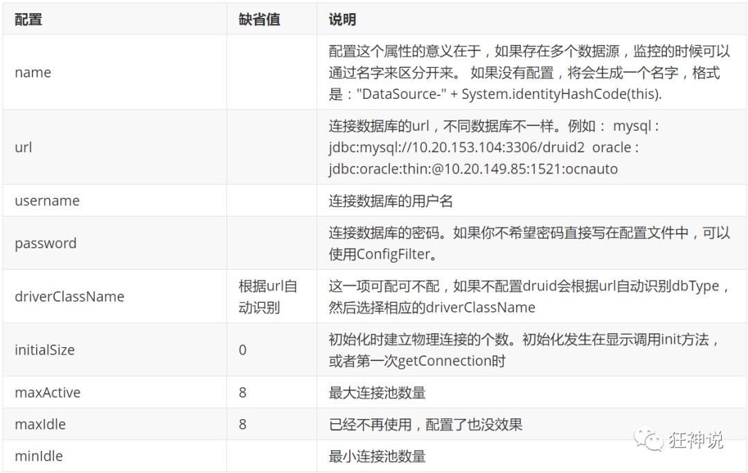 com.alibaba.druid.pool.DruidDataSource 基本配置参数如下: