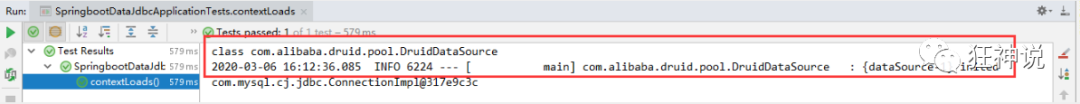 3、数据源切换之后,在测试类中注入 DataSource,然后获取到它,输出一看便知是否成功切换;
