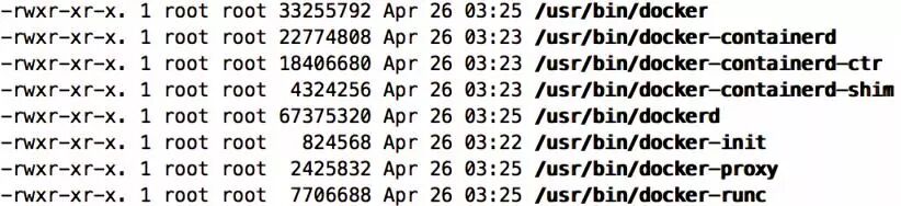 docker-containerd-shim:一个位于运行时实现前面的小垫片,它允许它重新分配来初始化并处理来自调用者的重新附加。
