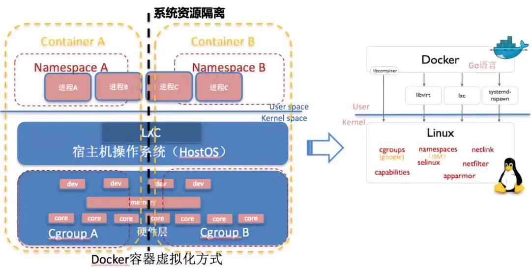 Docker 是PaaS 提供商 dotCloud, 基于容器技术的轻量级虚拟化解决方案,诞生于2013年初,基于Google公司推出的Go 语言实现,加入了 Linux 基金会,遵从Apache 2.0 协议,原始码在GitHub上进行维护;2017年Docker进行商业化运作,原来在github上开源项目正式改名为moby,docker变成了一家商业化公司。说到Docker,我们就不得不说容器技术了,Docker是一种容器化技术的落地。容器作为一类操作系统层面的虚拟化技术,其目标是在单一Linux主机交付多套隔离性环境,容器共享同一套主机操作系统内核。