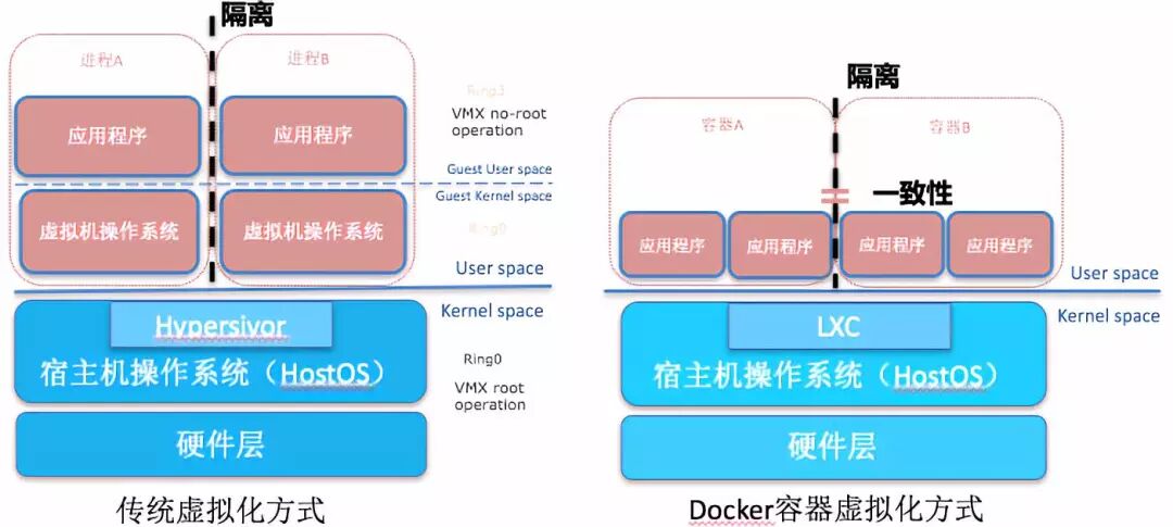 传统方式中每一步可能会出现问题(人工或程序);容器化后构建的镜像始终如一,任何地方运行都不受影响