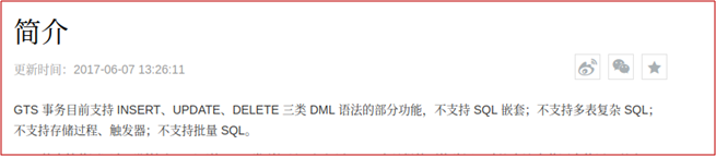 使用GTS(全局事务服务 - Global Transaction Service)也有很大的限制的,比如下图: