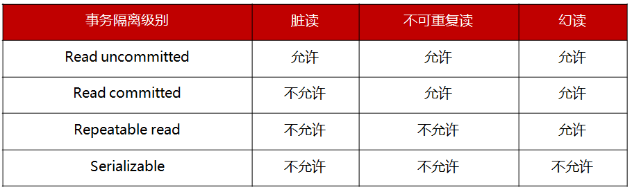 MySQL数据库为我们提供的四种隔离级别: