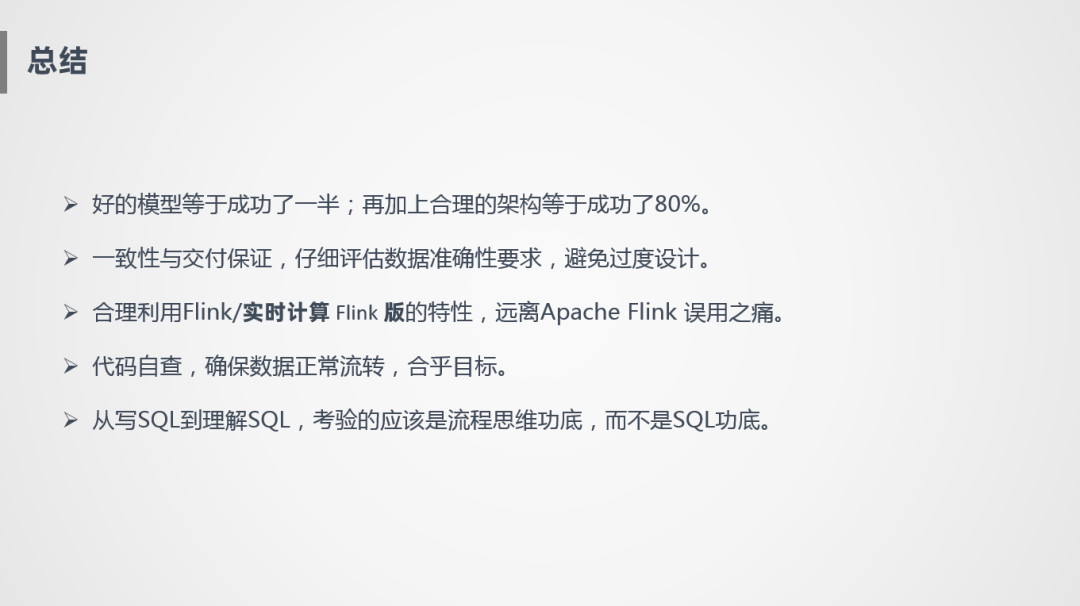 - 合理利用Flink特性:需要合理利用Fink的一些特性,避免一些误用之痛,比如State和CheckPoint的使用。