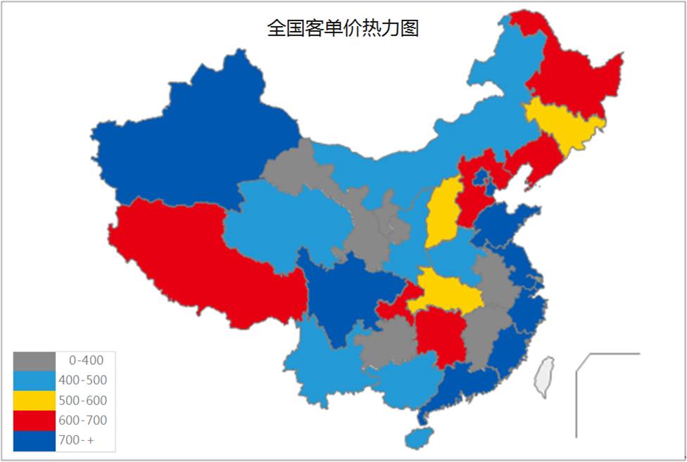 再看最后一张图,客单价的热力图,它是排行榜的一种变异。看这种图会有一种厮杀疆场的现场感,逼格很高。