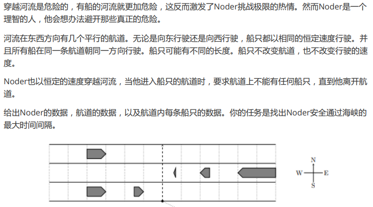 Noder 在穿越河流时不能停止, 所以出发的时间点决定了 Noder 是否能够通过河流, 问能够通过河流的最长持续时间.