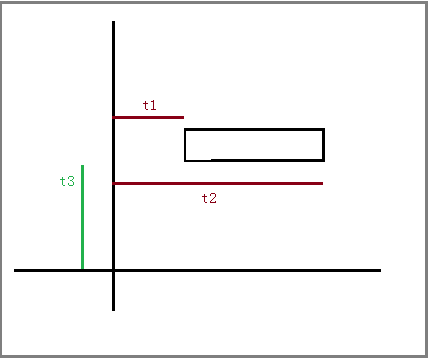 下面考虑一艘船对 Noder 时间区间的影响, 设船头 t1 到达过河线, 船尾 t2, Noder t3 到达该船航道, 则从下图可以看出,