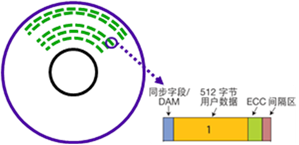 用户数据区是存储用户数据的区域,ECC随用户数据生成并一起写入碟片,用于修复受损的数据,格式化开销包含同步字段、DAM(数据地址标记)、扇区间隔,这些信息在格式化时生成。
