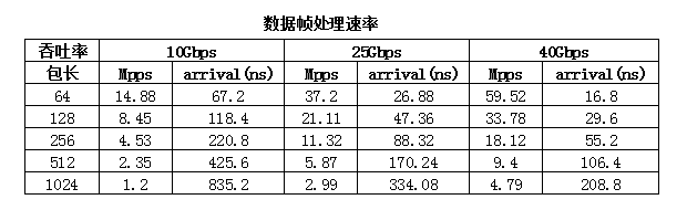 根据以太帧的大小,我们就可以算出来,不同的以太帧大小在不同的物理线路上传输的速率,比如10Gbps的物理线路,一个10Gbps的网卡1秒内可以接收的64B的数据包的个数(packet per seconds,即pps)为