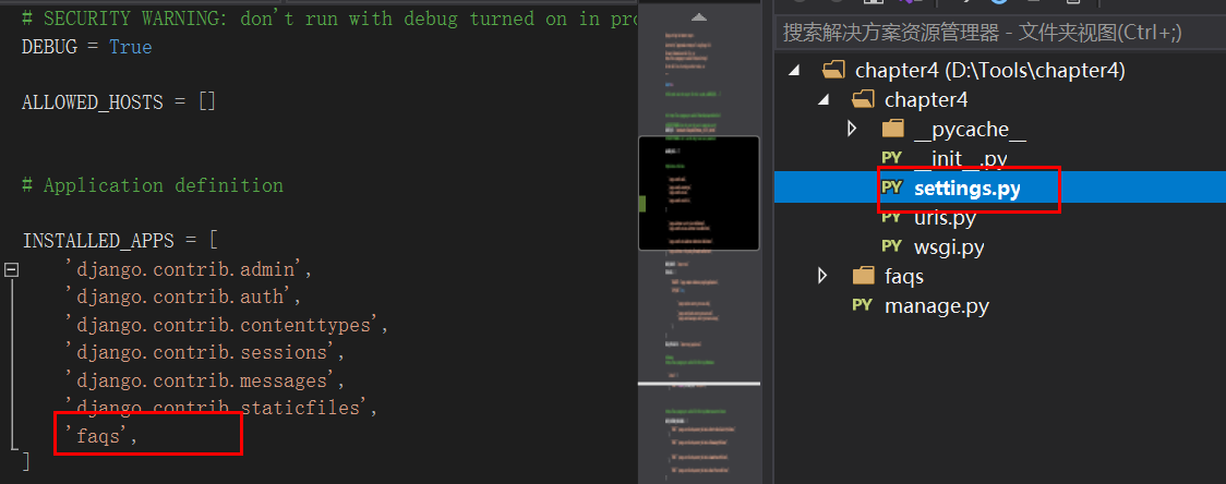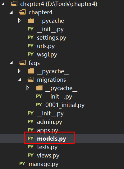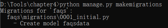 2.cd到项目下创建一个应用: python manage.py startapp faqs