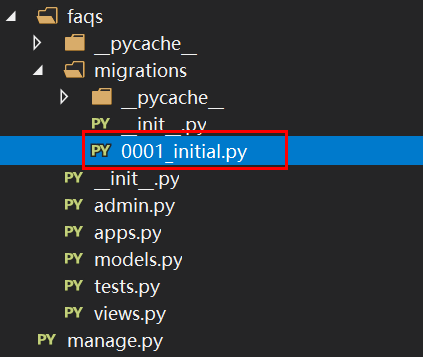 执行之后会在应用的migrations文件下看到生成的0001_initial.py文件