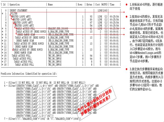 理顺序:一步走错,满盘皆输。通过理清执行计划顺序找出key steps。