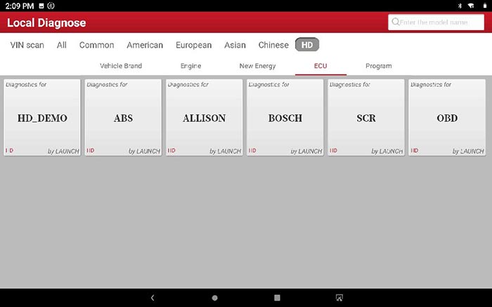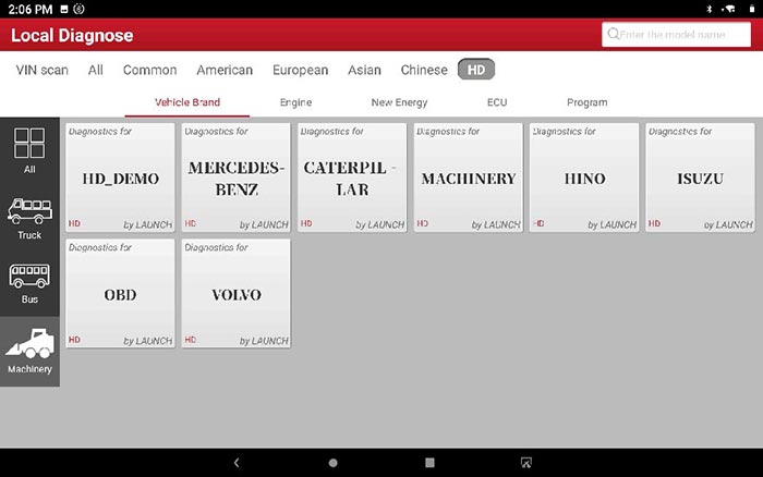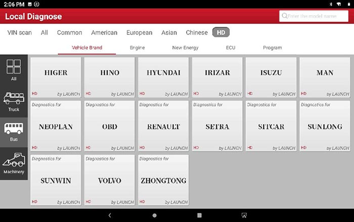 选择“HD”,您可以在[汽车品牌]中看到三个主要的车辆类别: