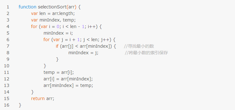 寻找最小的数,保存索引,然后与第一层循环其下标对于的值进行交换