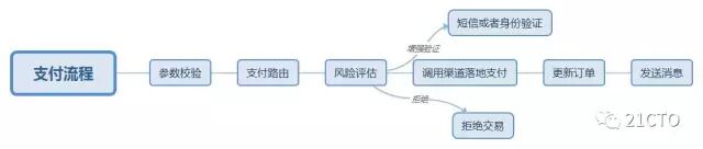 上述操作,除了对账、查单外,每个操作实现的主流程,一般会包括参数校验,支付路由,生成订单,风险评估,调用渠道服务,更新订单和发送消息这7步,对于一些比较复杂的服务,还会涉及到异步同通知处理的步骤。
