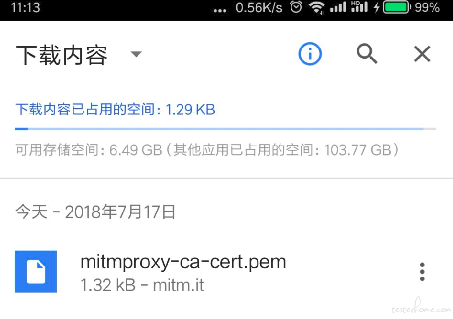 被测设备上用浏览器打开 http://mitm.it 选 Android 提示下载 pem.crt 安装,并安装证书。