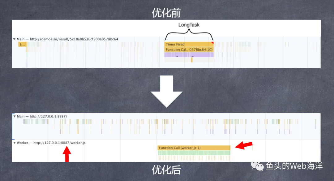 我们可以看看使用了Web Worker之后的优化效果: