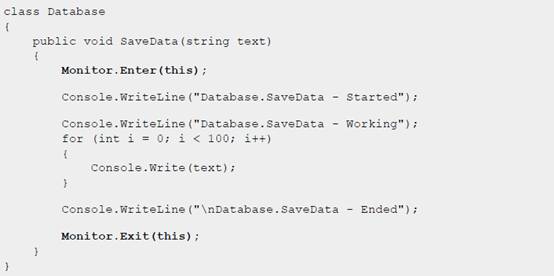 可以使用Monitor.Enter()和Monitor.Exit()方法将需要同步的代码包裹起来,这样当一个线程执行到这个区域时,会尝试取得当前对象的monitor lock,如果monitor lock已经被占用,会等到锁被释放后再去锁定相关区域。