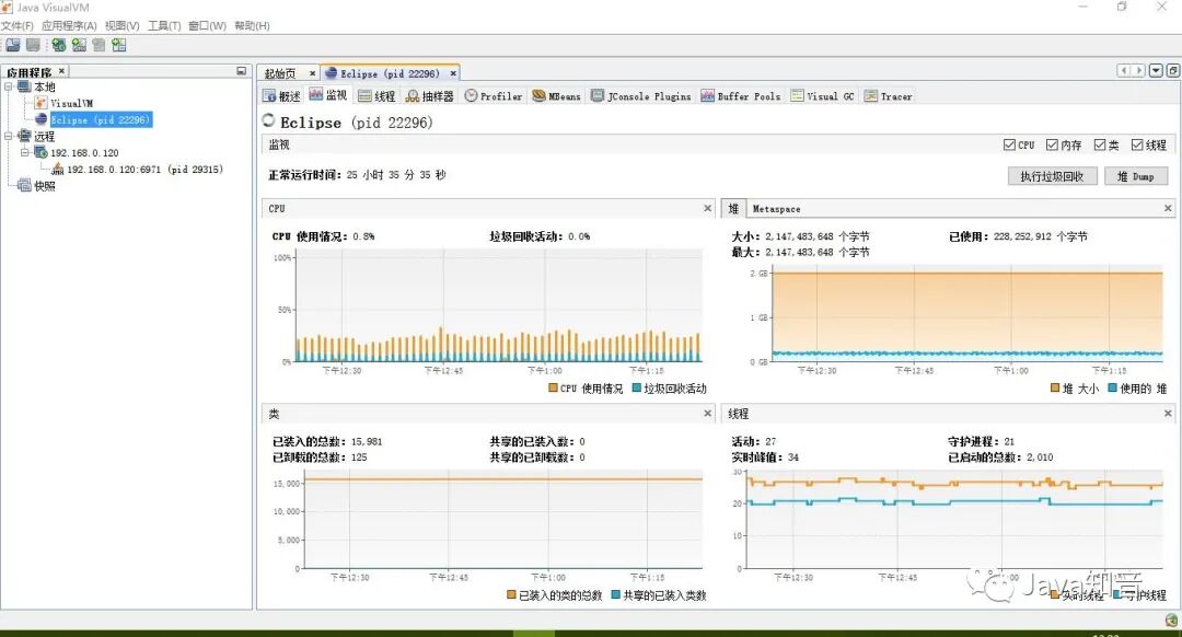 因为VisualVM的插件太多,我这里主要介绍三个我主要使用几个:监控、线程、Visual GC
