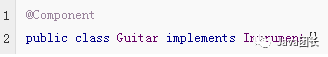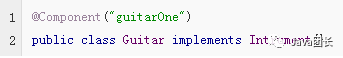 这里@Component会自动注册Guitar 为Spring Bean,并设置默认的Bean的Id为guitar,首字母大写变小写。注意如果第一个和第二个字母都是大写,默认的Bean的id会有特殊处理。