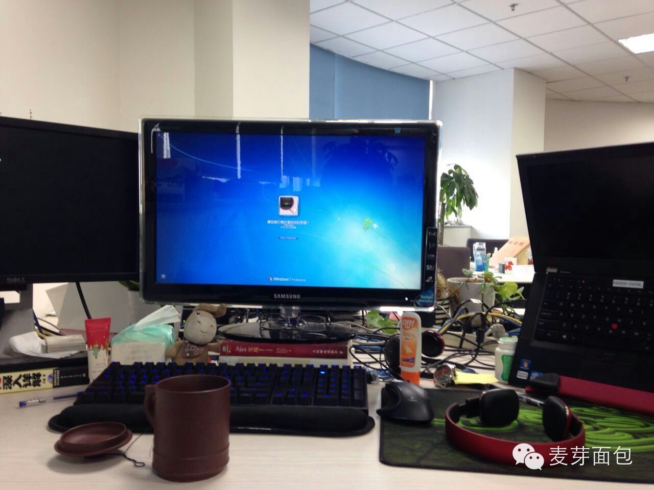 4.与上图同一个公司,这个估计就是正经码农了,这屏幕摆的跟电影里黑客style一样。