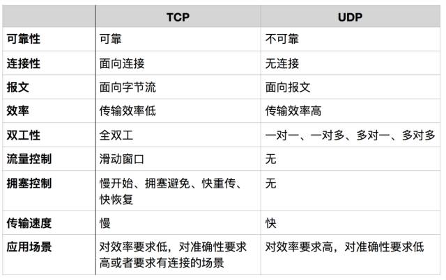 TCP/UDP都是是传输层协议,但是两者具有不同的特性,同时也具有不同的应用场景,下面以图表的形式对比分析。