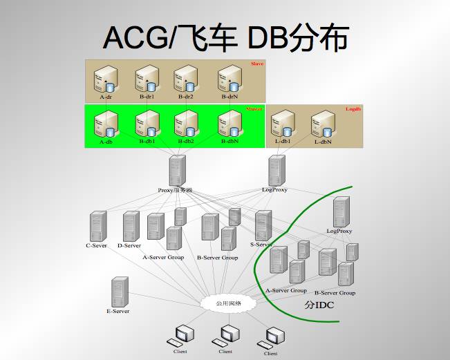 相对MMOG,ACG/飞车的游戏内容比较简单,以玩家对局为主,但单用户的数量会比PLAT / QQGame要大一点,需要大区方式运营,产品策划对于用户聚合有更多诉求,大区增加相对少,反而单个大区承载人数的上限,会因为时间推移,逐步通过技术升级不断提升。