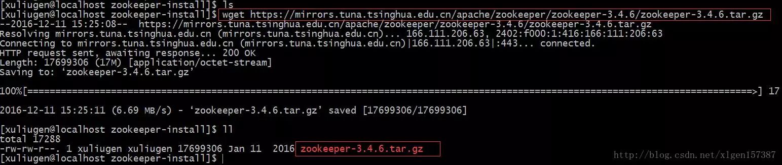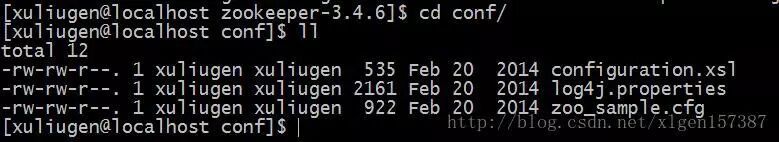 (3)使用: tar -xvf zookeeper-3.4.6.tar.gz 解压缩该文件;