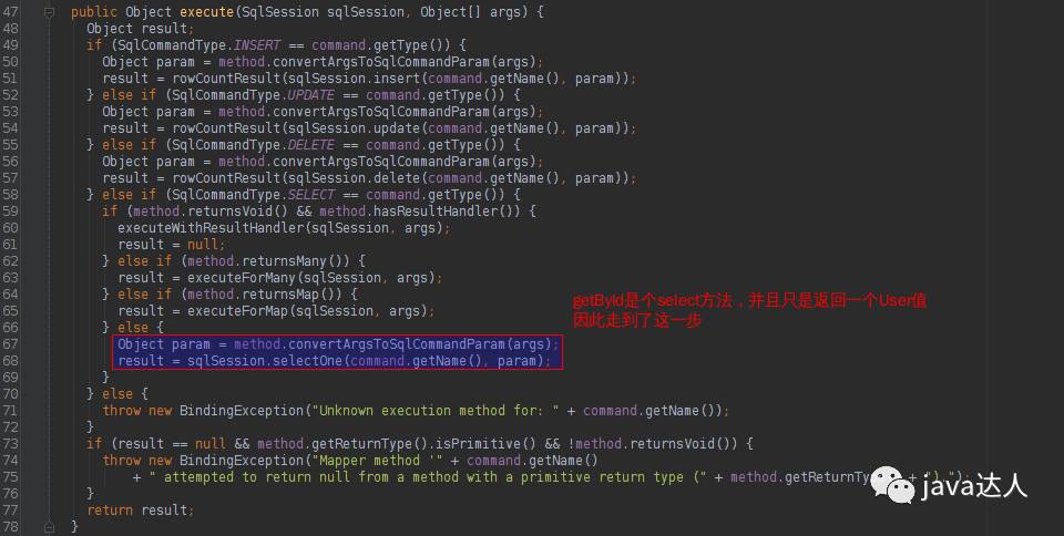 下面,我们以UserDao的getById方法来debug看看MapperMethod的execute方法是如何走的。