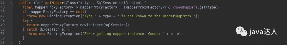 Configuration的getMapper方法,会使用MapperRegistry的getMapper方法: