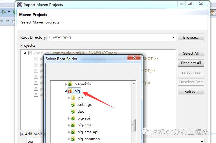 选择你本地的maven项目(请选中zscat-project根目录),点击确定