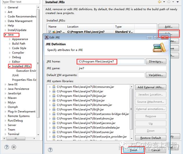 选择Window》Prefrences》java》Installed JREs》Edit》选择自己本地jdk安装路径》Finished》OK
