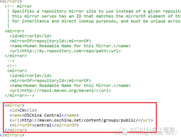 9. 修改刚刚安装的maven settings.xml配置文件,路径如下:E:myprjzscat-mavenapache-maven-3.1.1conf,