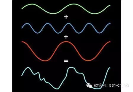 那么,什么是傅里叶理论呢,为什么他的这个理论如此有用?想想你在钢琴键盘上敲响一个音符。当你按下琴键的时候,钢琴中有一个小锤来来回回地敲击一根琴弦(对于音准do大约是440次每秒)。随着琴弦振动,它周围的空气分子也来回震动,从而创造了一波震动的空气分子,我们称之为声。如果你能看空气中进行的这种有规律的舞蹈,你会发现一系列平稳,起伏的,无休止的重复。这就是所谓的正弦波曲线,或正弦波。(特别说明:在钢琴的例子中,肯能会产生不止一条正弦波实际演奏中,钢琴音色的丰富性正是来源于在主要正弦波之外的那些轻柔的泛音。钢琴的音符可以大致模仿一条正弦波,但是对于单一的正弦波声音来说,音叉发出的声音是一个更加贴切的例子。)现在,让我们暂时放下单独一个音符,而考虑由三个按键同时发出的和弦声。和弦结果的声波并不漂亮——它看起来杂乱无章。但是,在这混乱的背后有一个简单的模型。毕竟,和弦只是三个音符的相互融合与碰撞,因此这样混乱的声波,实际上只是三种音符(正弦曲线)的和而已。