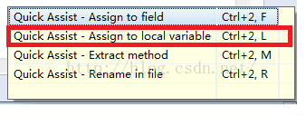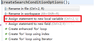 然后选择Assign statement to new local variable。Eclipse会自动生成返回值。这是非常实用的操作,基本上天天用。当然你也可以直接使用ctrl+2,Eclipse会右下角弹出一个辅助窗口,然后输入字母L即可。