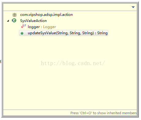 以前都是用Eclipse的outline来看,现在你可以关闭它了,因为使用Ctrl + O就可以显示当前文件的所有属性和方法。注意是大写字母O,不是数字0。