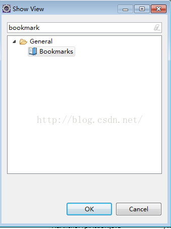 这样Eclipse会显示一个show view的视图,然后输入bookmark,显示“Bookmarks”项,点击它即可。