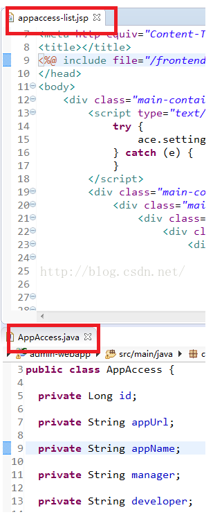 如果将AppAccess.java在下面显示呢?只需要拖动AppAccess.java即可。当出现如下图的上下分隔线时,放开鼠标即可。