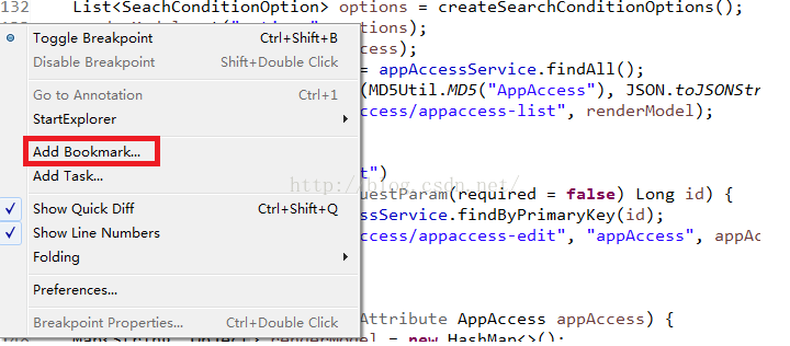 如果你想把132行记录起来,可以使用鼠标右键,点击”Add Bookmark”,写入一个bookmark。