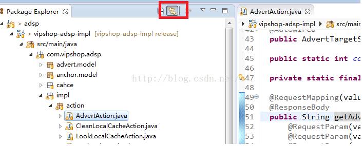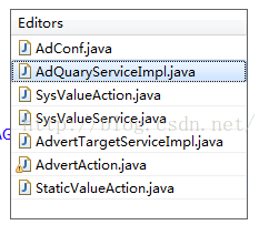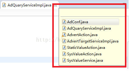 按下Ctrl + Pg Dn,从AdConf.java跳到 AdQuaryServiceImpl.java