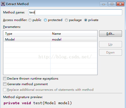 如果一个方法的代码太长,你想抽取子方法,那么只要选中某块代码,然后使用Alt + Shift + M,就会弹出抽取视图,输入方法名即可。