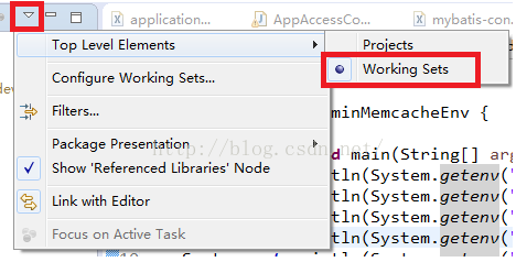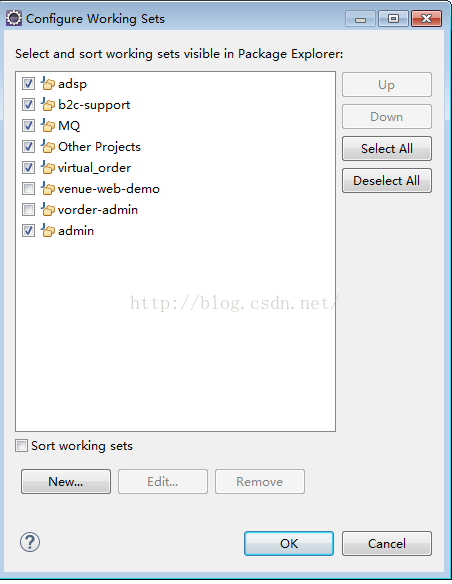通常在一个Eclipse工作空间中会存在非常多的工程,让人眼花缭乱的。这个时候可以使用working sets对project进行归类。